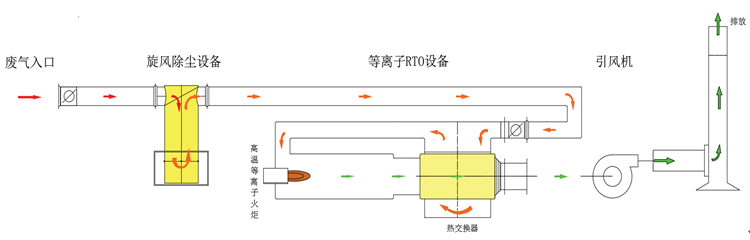 等离子RTO是蓄热式等离子焚烧装置。 等离子RTO与燃气RTO的结构相似,工作机理、处理效果完全一致。